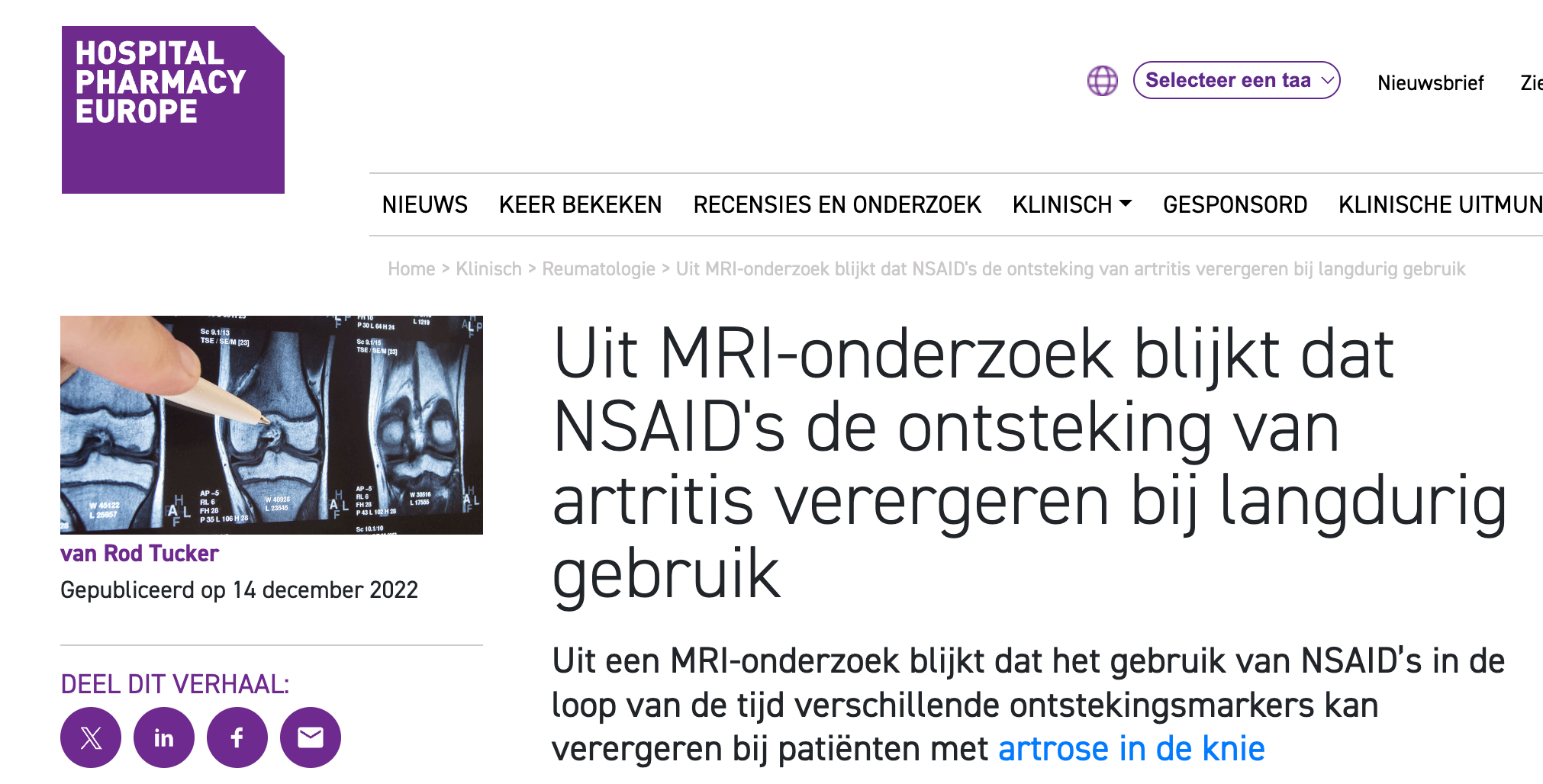 Ik ontdekte een baanbrekend onderzoek van deUniversiteit van Californië gepubliceerd in december 2022 waarin werd onderzocht 277 mensen met een matige tot ernstige kniegewrichtsontsteking die minimaal een jaar lang regelmatig ontstekingsremmende pijnstillers slikten.