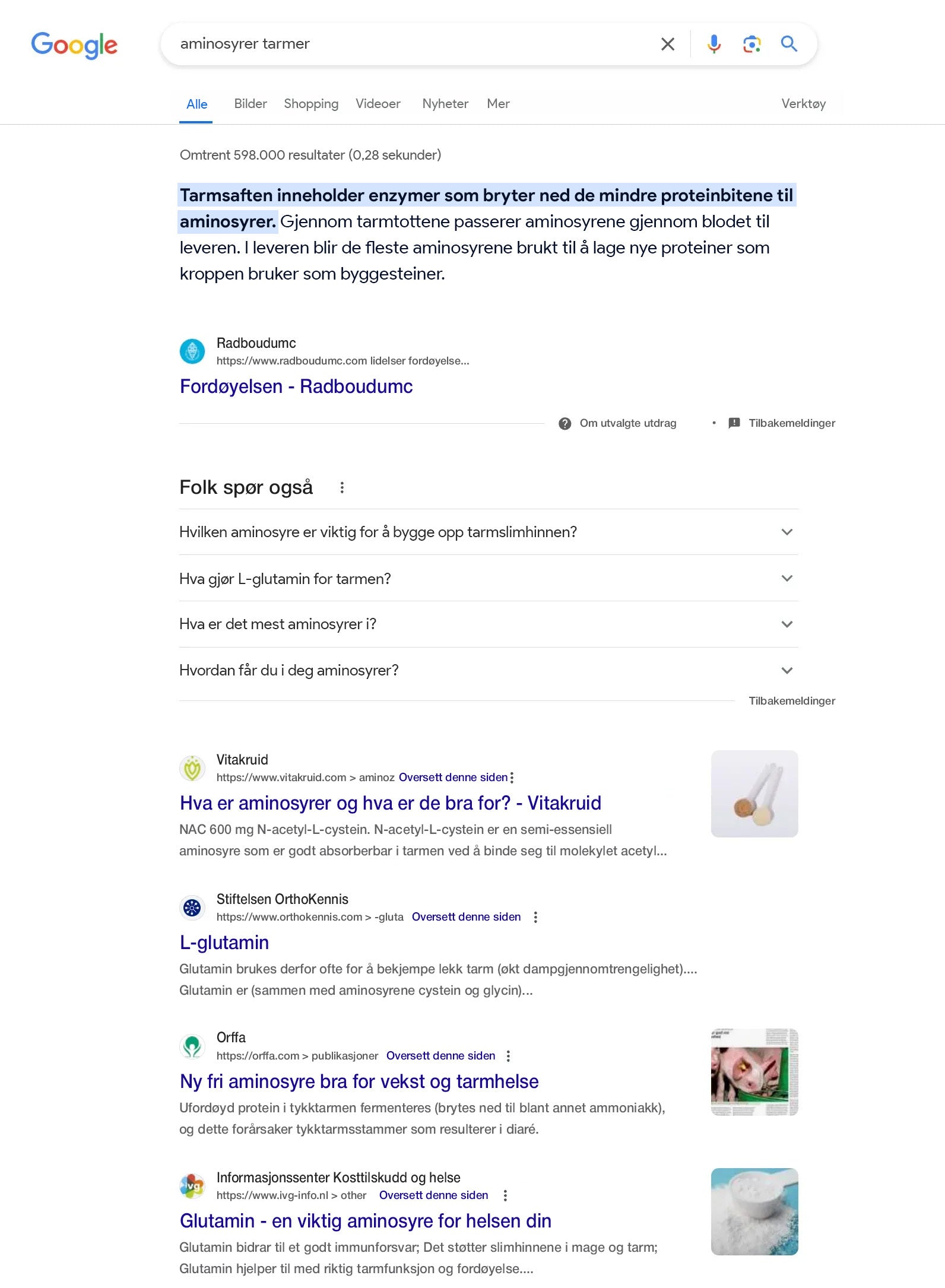 Og det er ingen overraskelse: et raskt Google-søk viser at aminosyrer kan forbedre tarmhelsen.