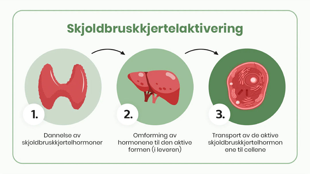 Skjoldbruskhormonene må konverteres til en aktiv form og deretter transporteres inn i cellene.