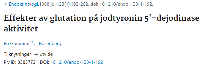 Effekter av glutation på jodtyronin-5'-deiodinase-aktivitet: https://pubmed.ncbi.nlm.nih.gov/3383773/