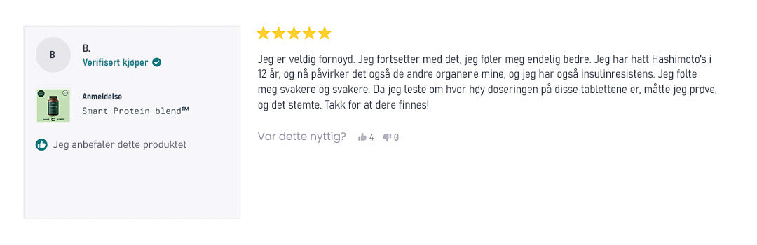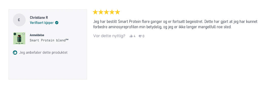Jeg bruker et produkt som heter Smart Protein Blend.