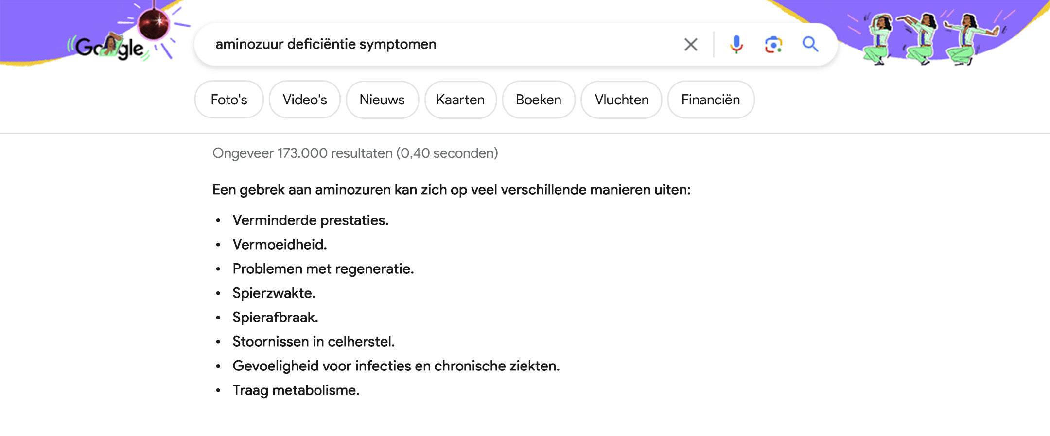 Laat staan dat mijn arts ook maar een seconde dacht dat er sprake zou kunnen zijn van een aminozuur tekort.