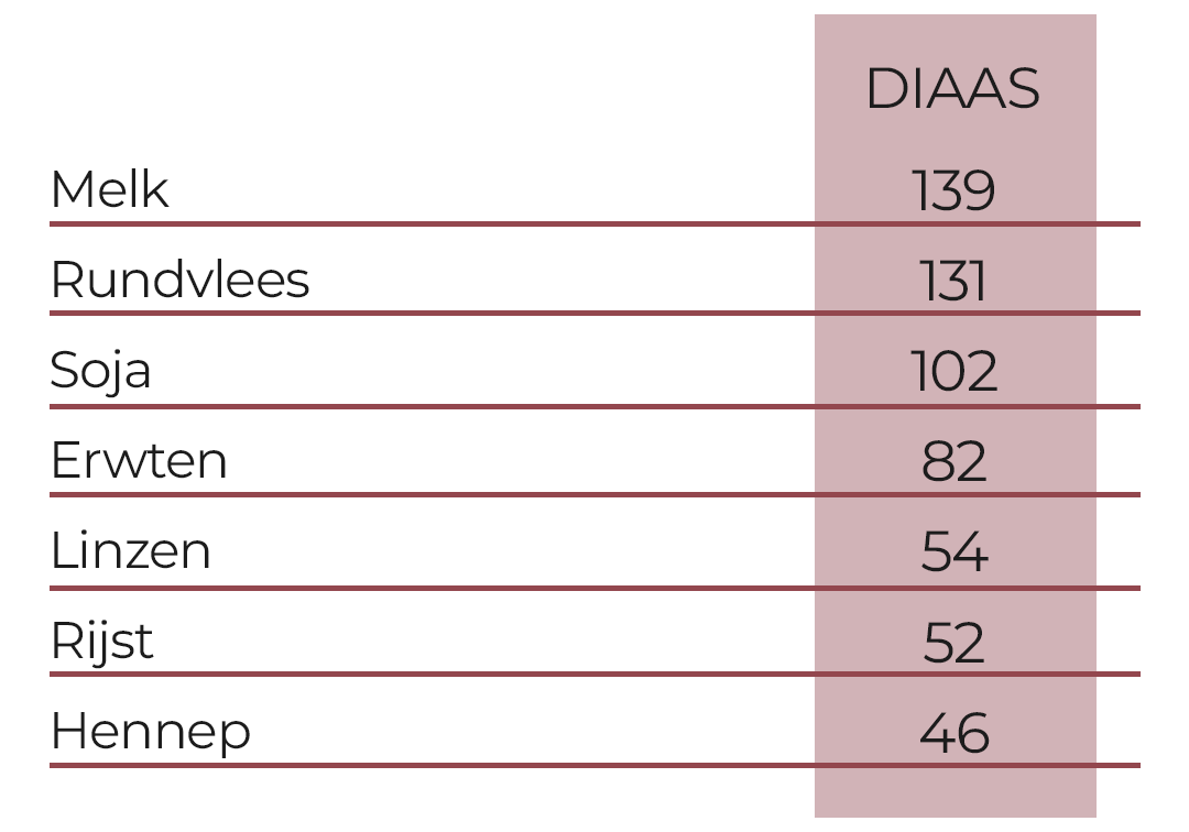 Elke eiwitbron levert niet dezelfde hoeveelheden aminozuren; hierover later meer.