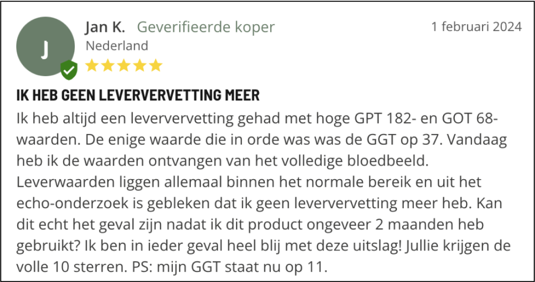 Het resultaat: een gezonde lever en betere cholesterol-, AST-, ALT- en gamma-GT-niveaus.