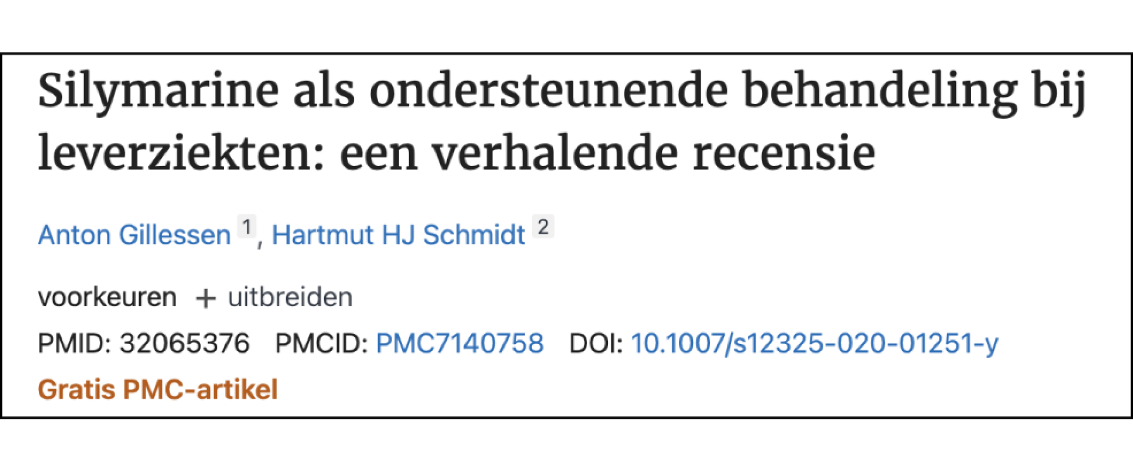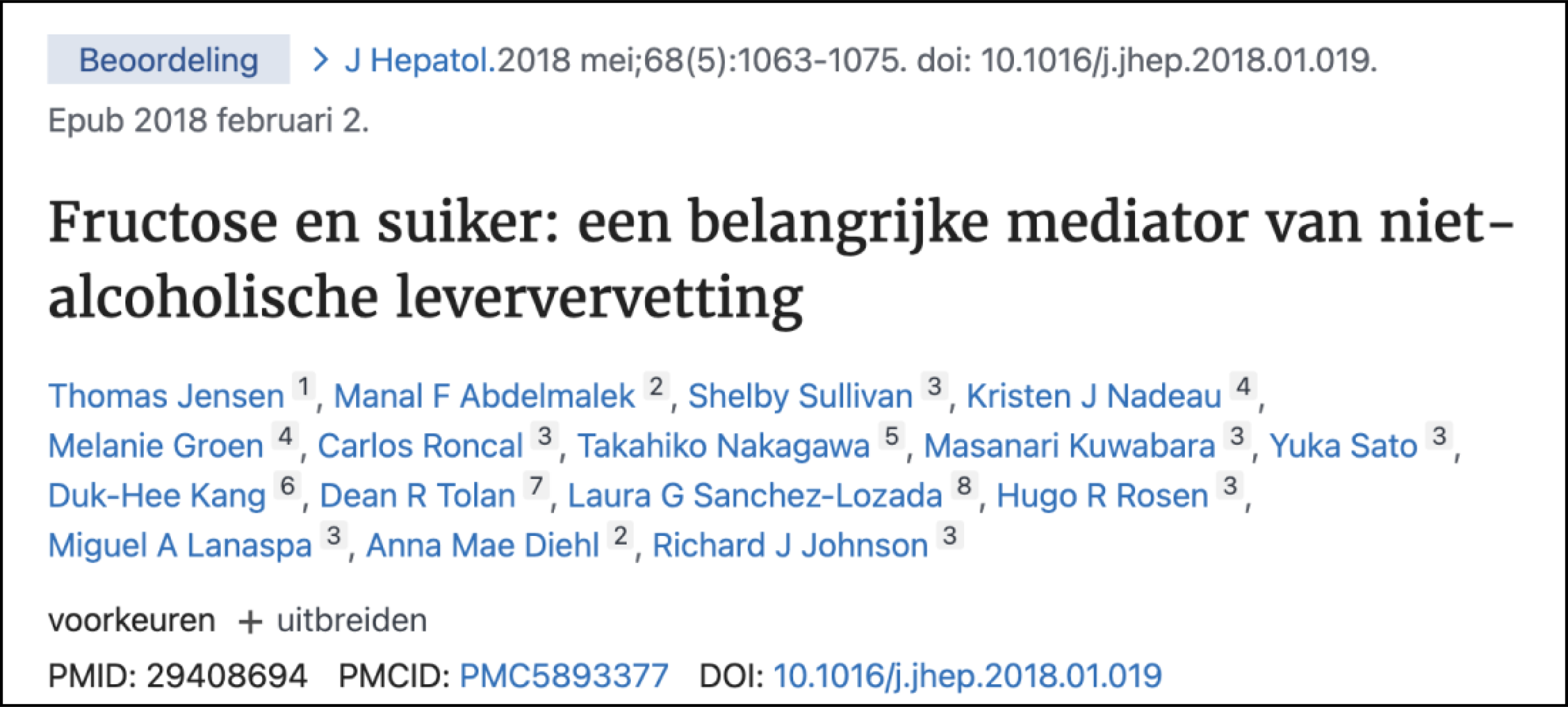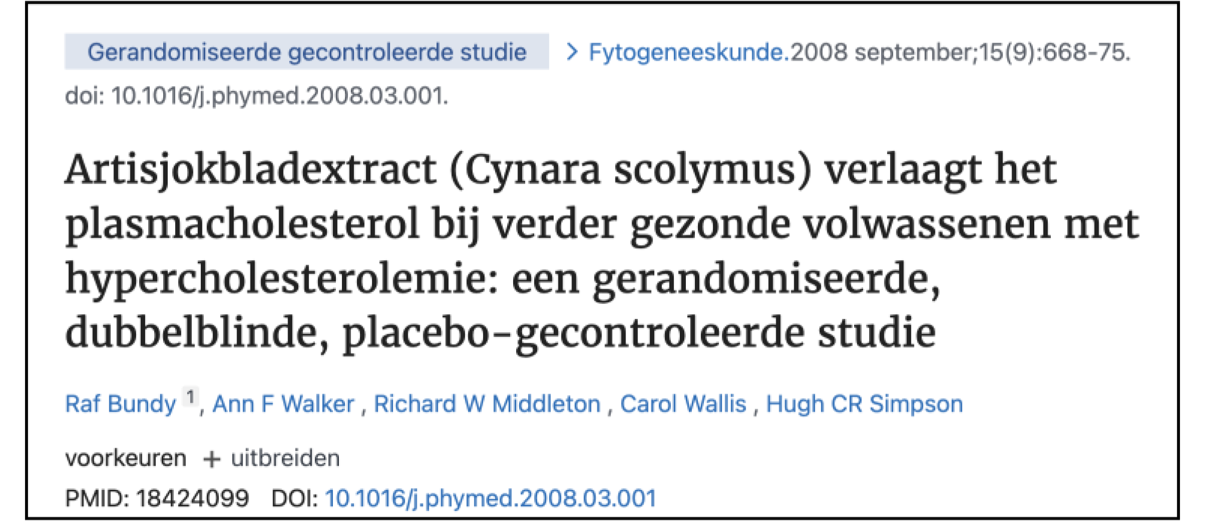 Fructose en suiker: Een belangrijke mediator van niet-alcoholische vette leverziekte (https://pubmed.ncbi.nlm.nih.gov/29408694/)Mariadistel bij leverziekten: verleden, heden, toekomst (https://pubmed.ncbi.nlm.nih.gov/20564545/)Werkzaamheid van artisjok droog extract bij patiënten met hyperlipoproteïnemie (https://pubmed.ncbi.nlm.nih.gov/18424099/)